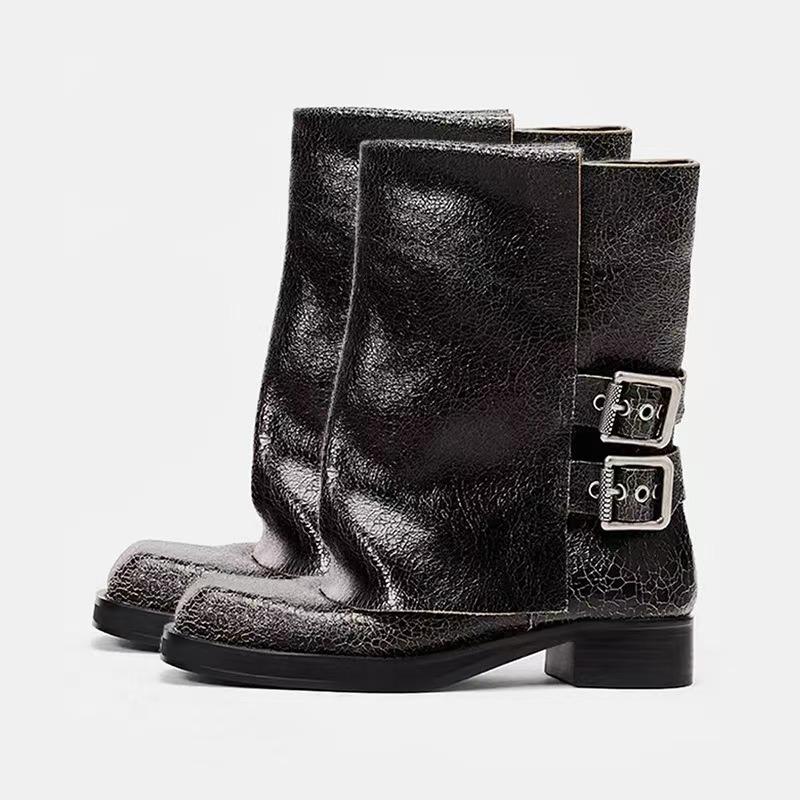 Дизайнерские брюки с пряжкой на ремне, сапоги для женщин, новые короткие сапоги с квадратным носком, женские сапоги в стиле панк на толстом каблуке