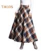 Женская шерстяная юбка с высокой талией и клетчатым принтом, юбка-трапеция, осень-зима, утолщенная юбка с большим подолом, повседневная одежда