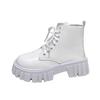 Новые женские белые ботильоны из искусственной кожи, армейские ботинки на толстой подошве со шнуровкой, женская осенне-зимняя обувь на платформе, женская обувь