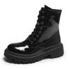 Ботильоны розового цвета на шнуровке, женские туфли, лакированные кожаные мотоциклетные ботинки на платформе, женские, на толстом каблуке, короткие ботильоны на молнии