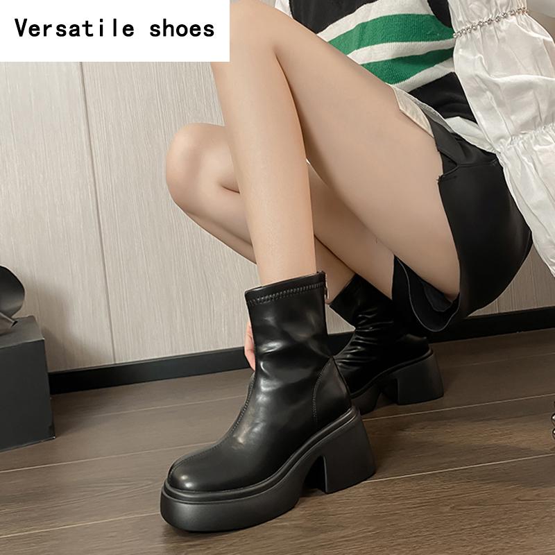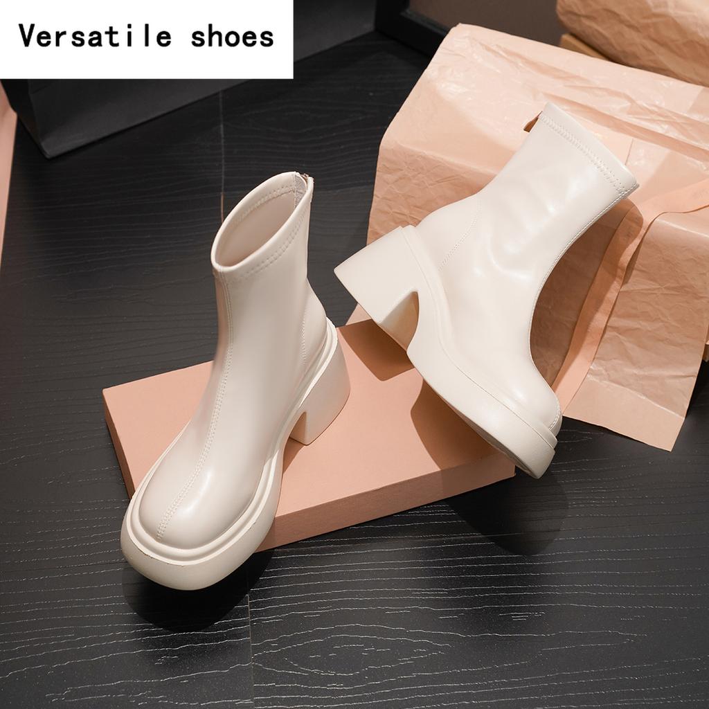 Платформа Толстый Каблук Женские Ботильоны Мода Современные Короткие Ботильоны Зимние Женские Лаконичные Largas Ботильоны