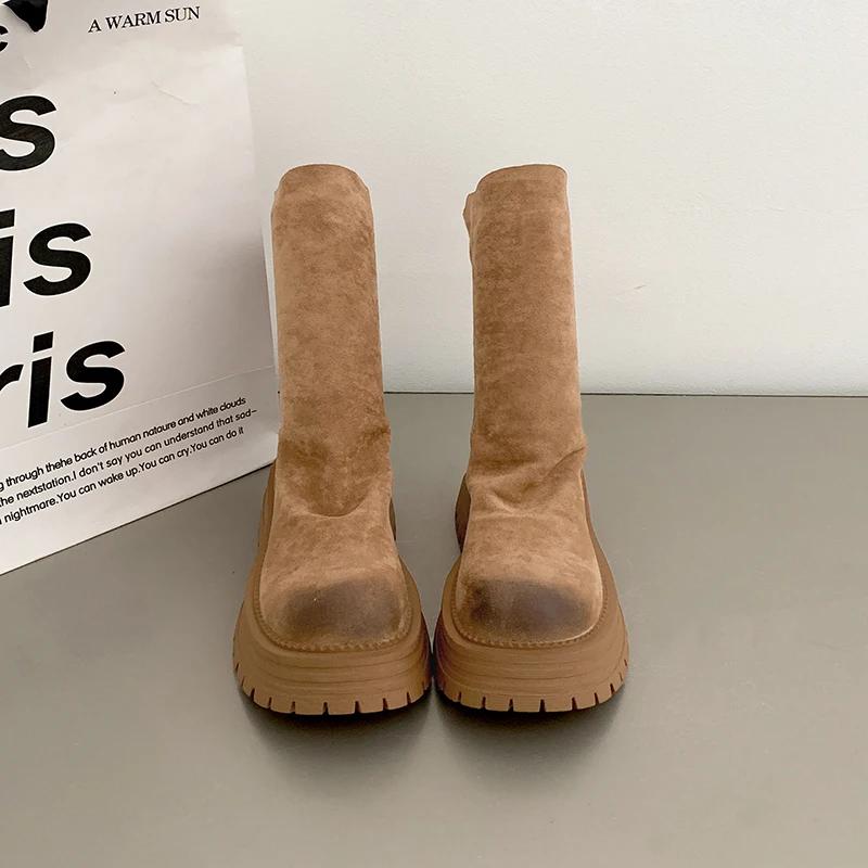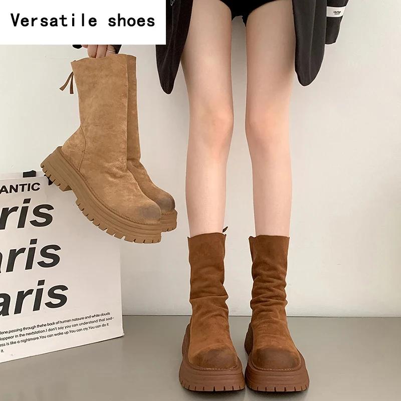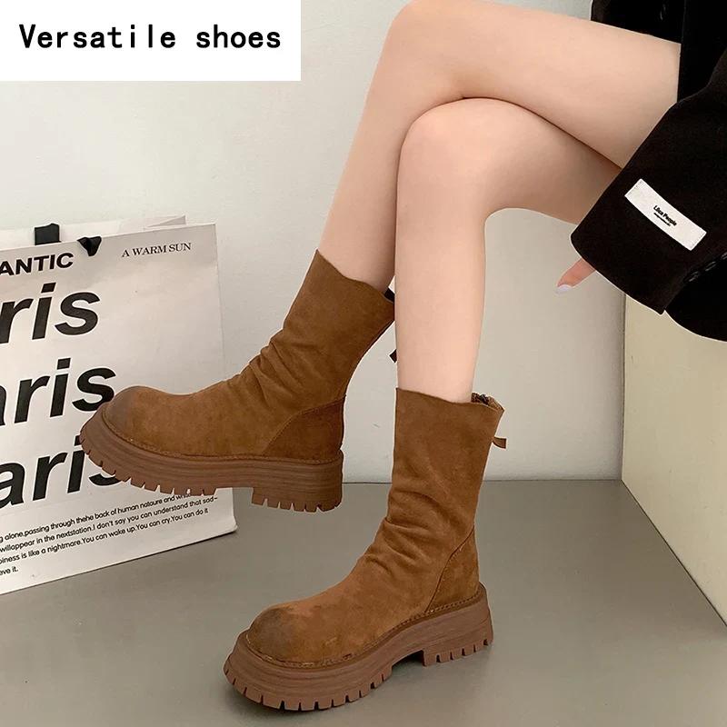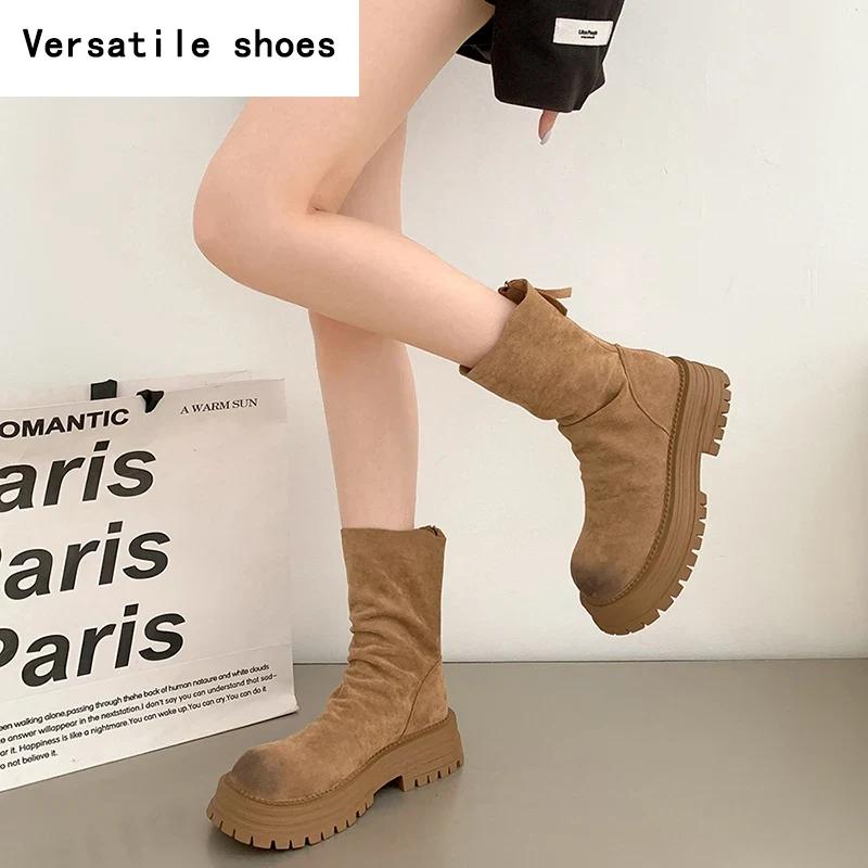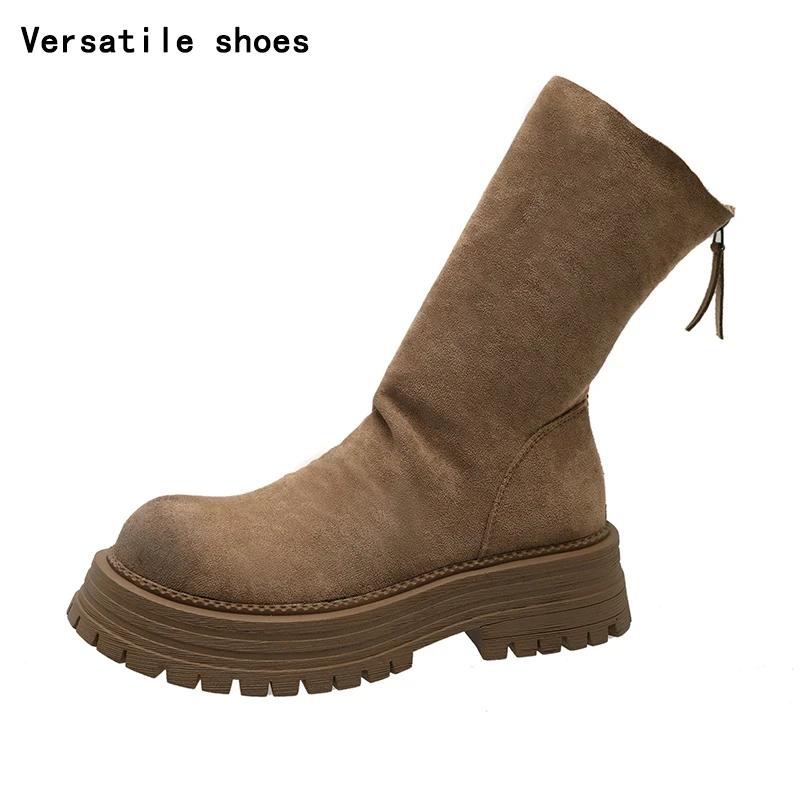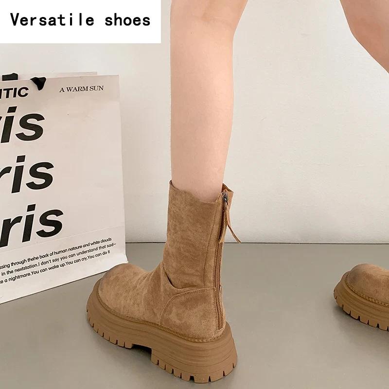 Ретро-стиль шитья женские тонкие ботильоны модные молнии сзади обувь осень-зима толстый каблук женские короткие ботильоны