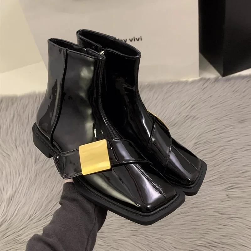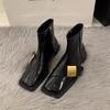 Женские брендовые роскошные ботильоны на плоской подошве, повседневные туфли с квадратным носком, модные дизайнерские новые зимние ботинки из кожи в стиле панк, женские ботинки