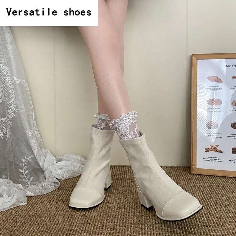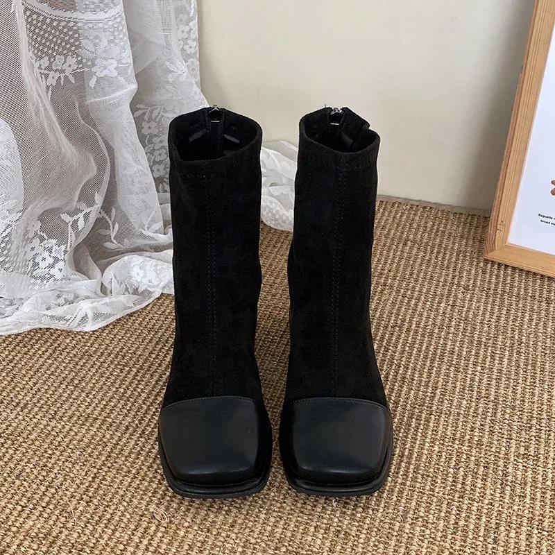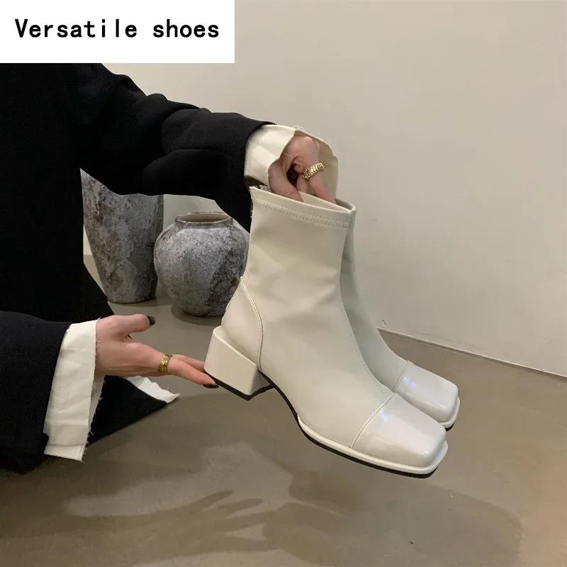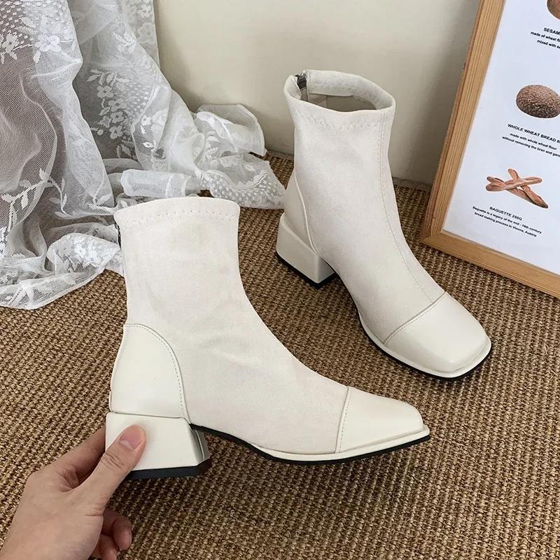 Женские эластичные утягивающие короткие сапоги, модные туфли с молнией сзади на низком каблуке, осень-зима, новые женские ботильоны