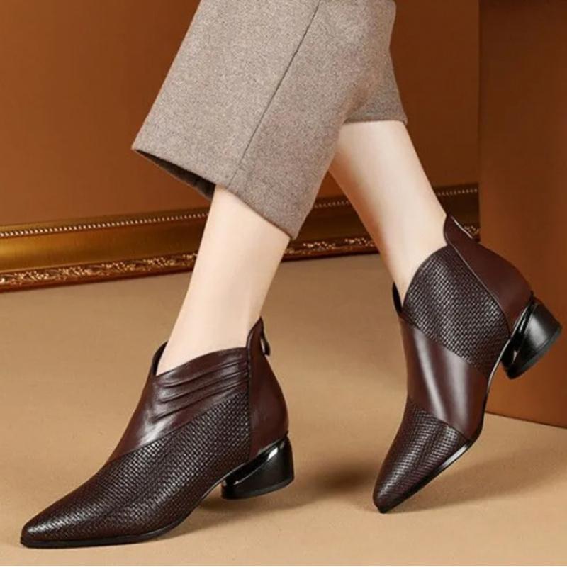 Роскошные женские ботильоны с острым носком, ретро-туфли из кожи, модные высококачественные офисные туфли на низком каблуке, черные ботинки на платформе — купить товар онлайн с бесплатной доставкой по всему миру!