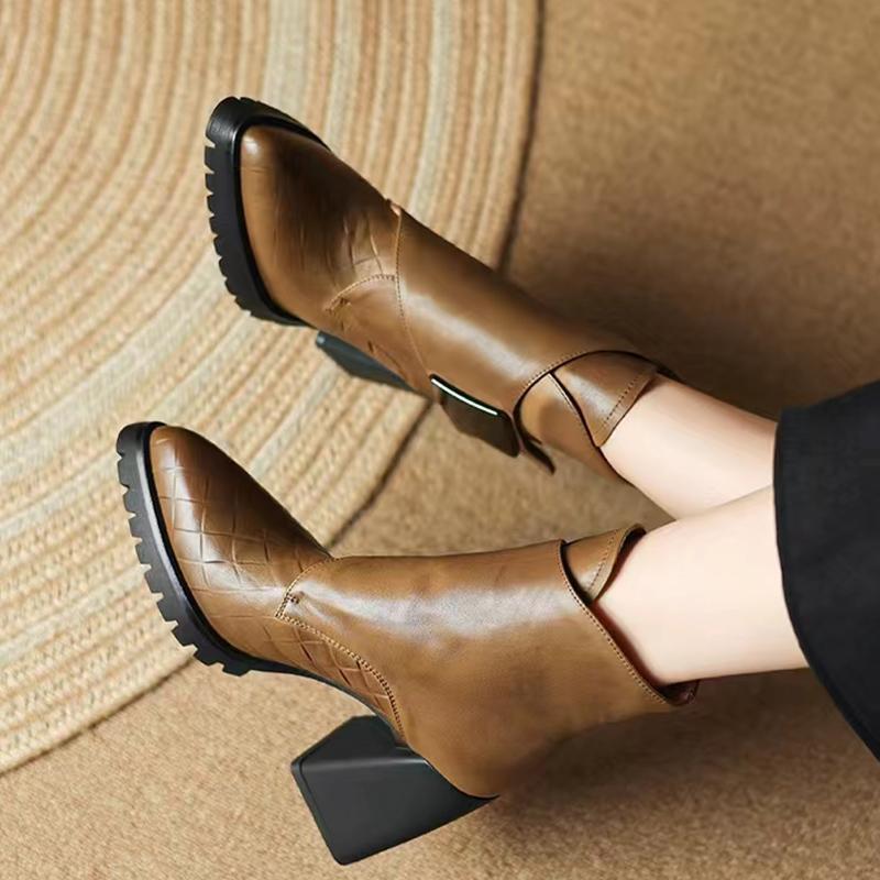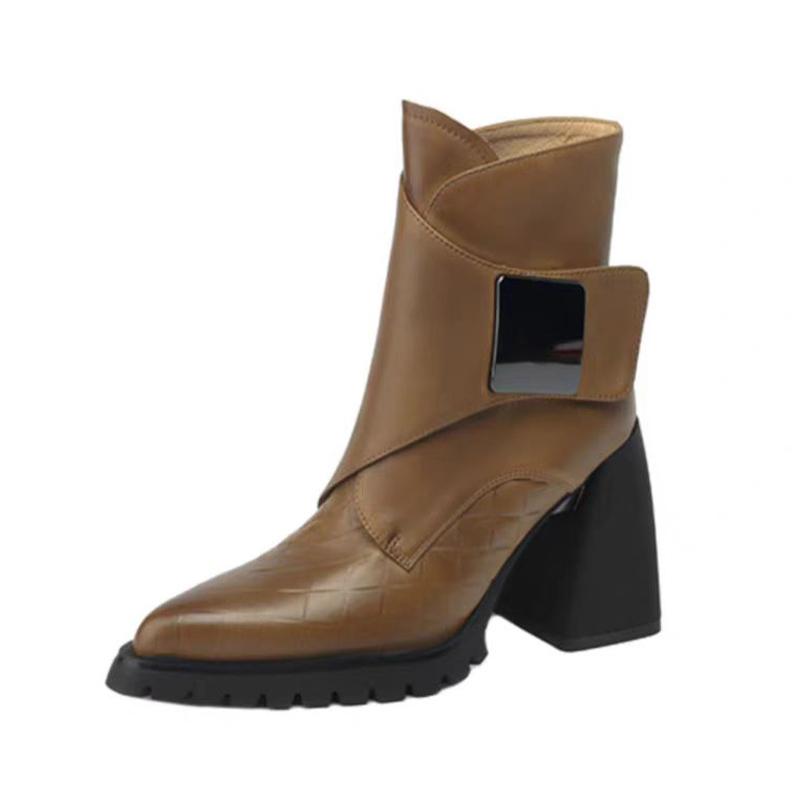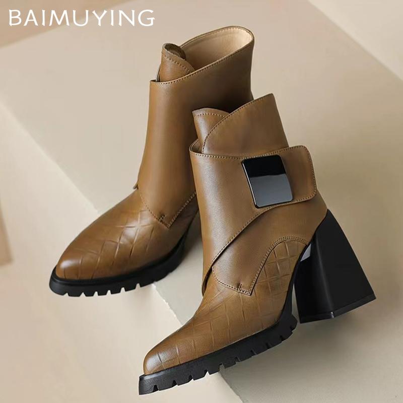 Женские ботильоны на высоком каблуке с острым носком, дизайнерская элегантная обувь, трендовые зимние туфли на толстой подошве из кожи, туфли-лодочки Chelsea Botas De Mujer