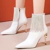 Женские ботильоны с кристаллами и кисточками, модные туфли на высоком каблуке с острым носком, трендовые зимние элегантные туфли-лодочки из кожи в готическом стиле Botas Mujer