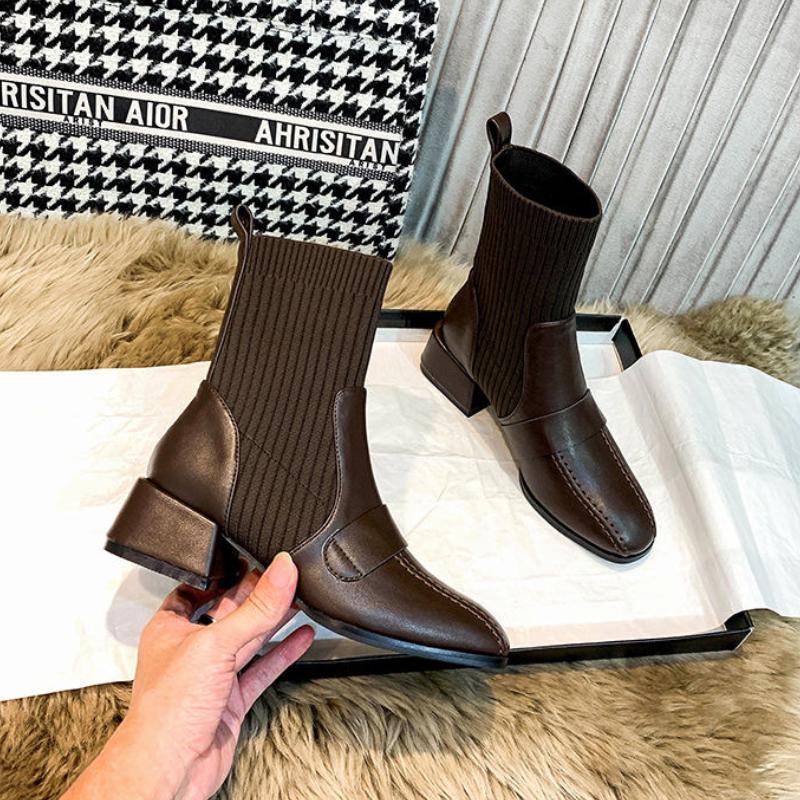 Женские эластичные носки сапоги женские осенне-зимние новые квадратные носки короткие сапоги без застежек модные ботильоны Botas De Mujer