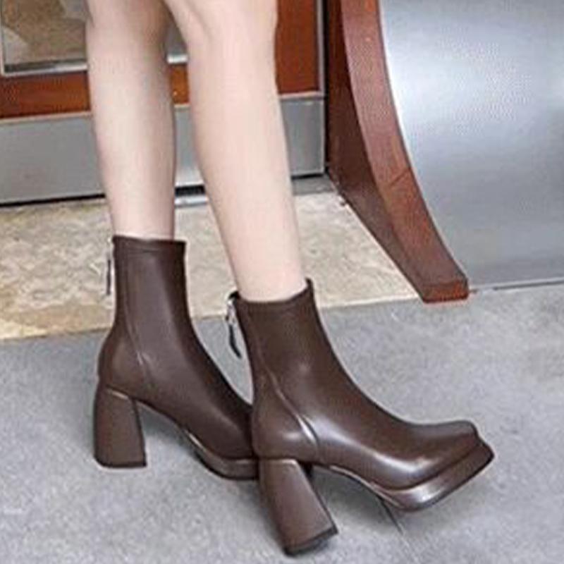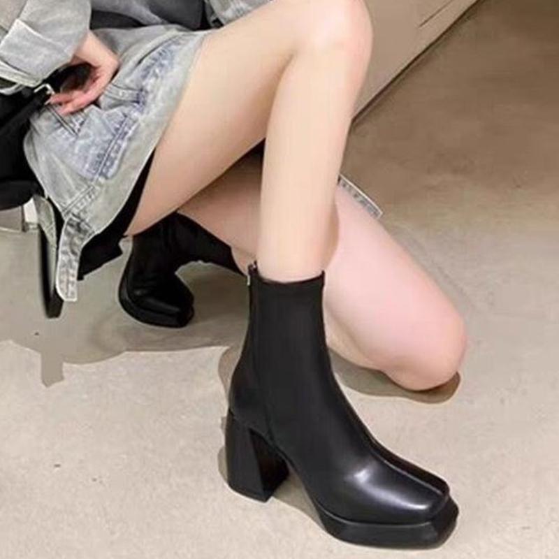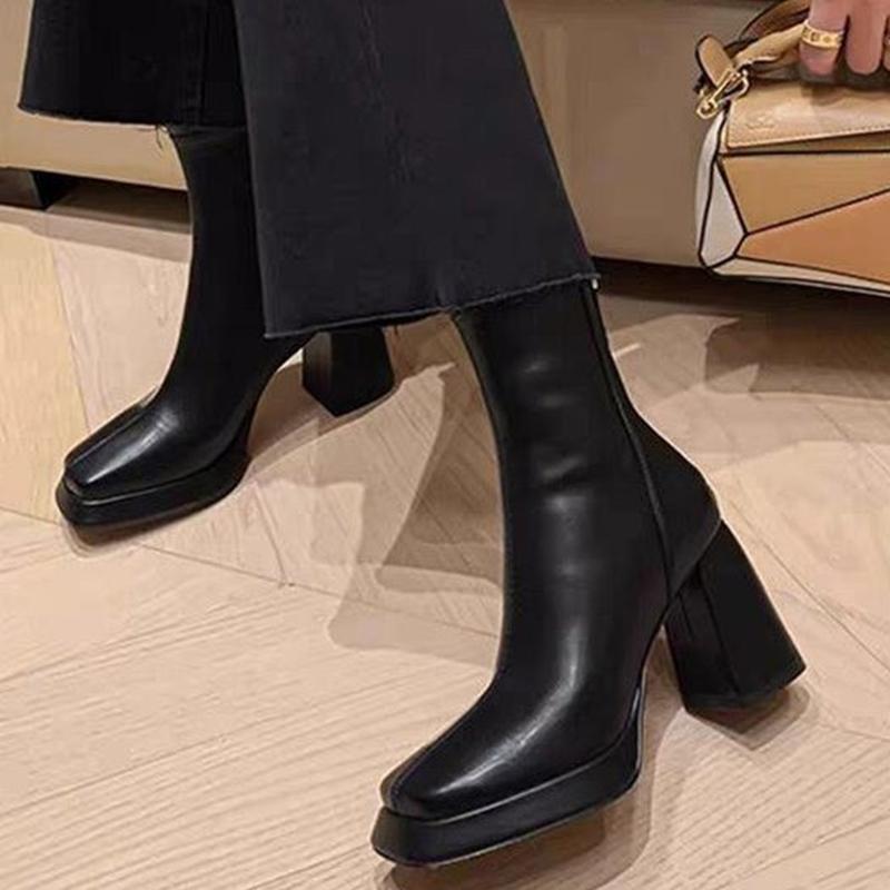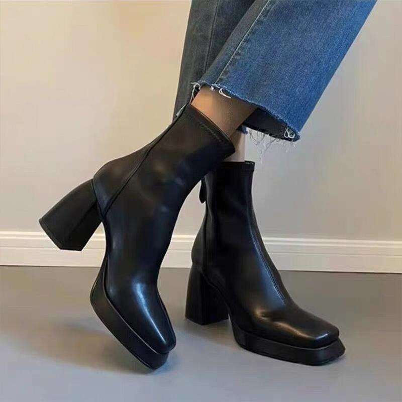 Ботильоны на высоком каблуке Ботильоны для зимы Ботильоны с квадратным носком Зимние ботинки челси Кожаные массивные дизайнерские туфли Трендовые готические женские туфли Zapatillas