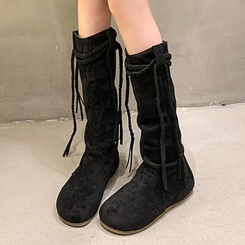 Женские высокие сапоги с бахромой, замшевые туфли на плоской подошве, высокие сапоги до колена, плиссированные, модные, люксовые, брендовые, зимние, модные, челси, готические сапоги, Mujer