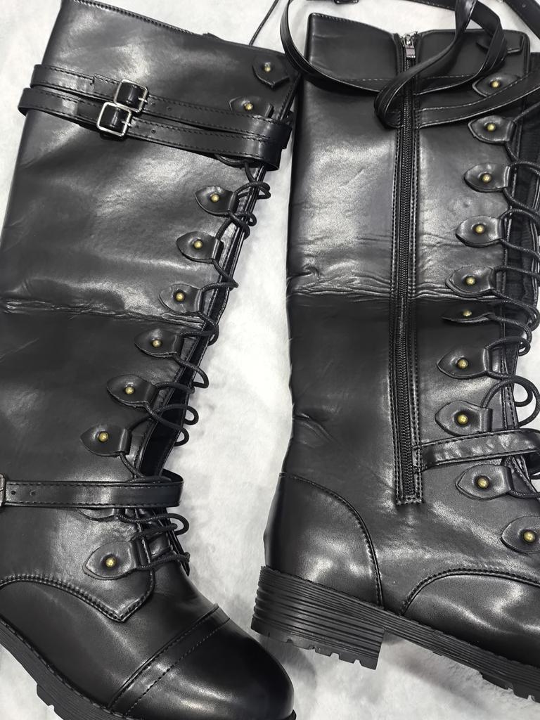 Женские сапоги до колена, осенне-зимние, на шнуровке, на плоской подошве, сексуальные, в стиле стимпанк, ПУ, ретро, с пряжкой, женская обувь, женские зимние сапоги на платформе — купить товар онлайн с бесплатной доставкой по всему миру!