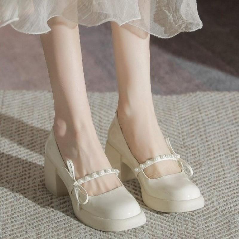 Ретро жемчужный пояс женские плиссированные кожаные туфли женские офисные туфли с бусинами