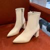 Осенние женские туфли на каблуке Зимние ботильоны на толстом каблуке из бархата для женщин Повседневные женские ботинки челси на высоком каблуке