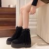 Ботинки на платформе с кисточками для женщин Зимние одинарные женские ботинки из коровьей замши с круглым носком и толстым каблуком Короткие женские ботинки в стиле ретро