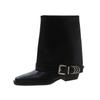 Новые мягкие кожаные ковбойские брюки в стиле вестерн для женщин, слип-он, украшение на пряжке, толстый каблук, до середины икры, Botas Zapatos Mujer