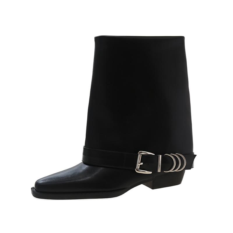 Новые мягкие кожаные ковбойские брюки в стиле вестерн для женщин, слип-он, украшение на пряжке, толстый каблук, до середины икры, Botas Zapatos Mujer — купить товар онлайн с бесплатной доставкой по всему миру!