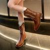 Винтажная вышивка женские ковбойские сапоги в стиле вестерн модные элегантные туфли без застежек на квадратном каблуке женские рыцарские полусапожки до середины голени