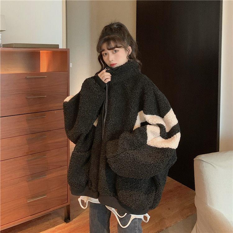 Осень-зима женская куртка с капюшоном на молнии уличная рубашка пальто искусственная овечья шерсть свободный кардиган свитер одежда Y2k — купить товар онлайн с бесплатной доставкой до всему миру!