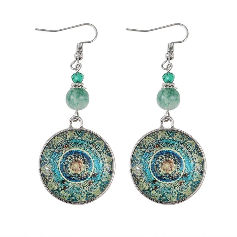 Европейские и американские ретро-серьги с драгоценными камнями в виде мандалы и цветка, длинные серьги-подвески в виде ловца снов для женщин