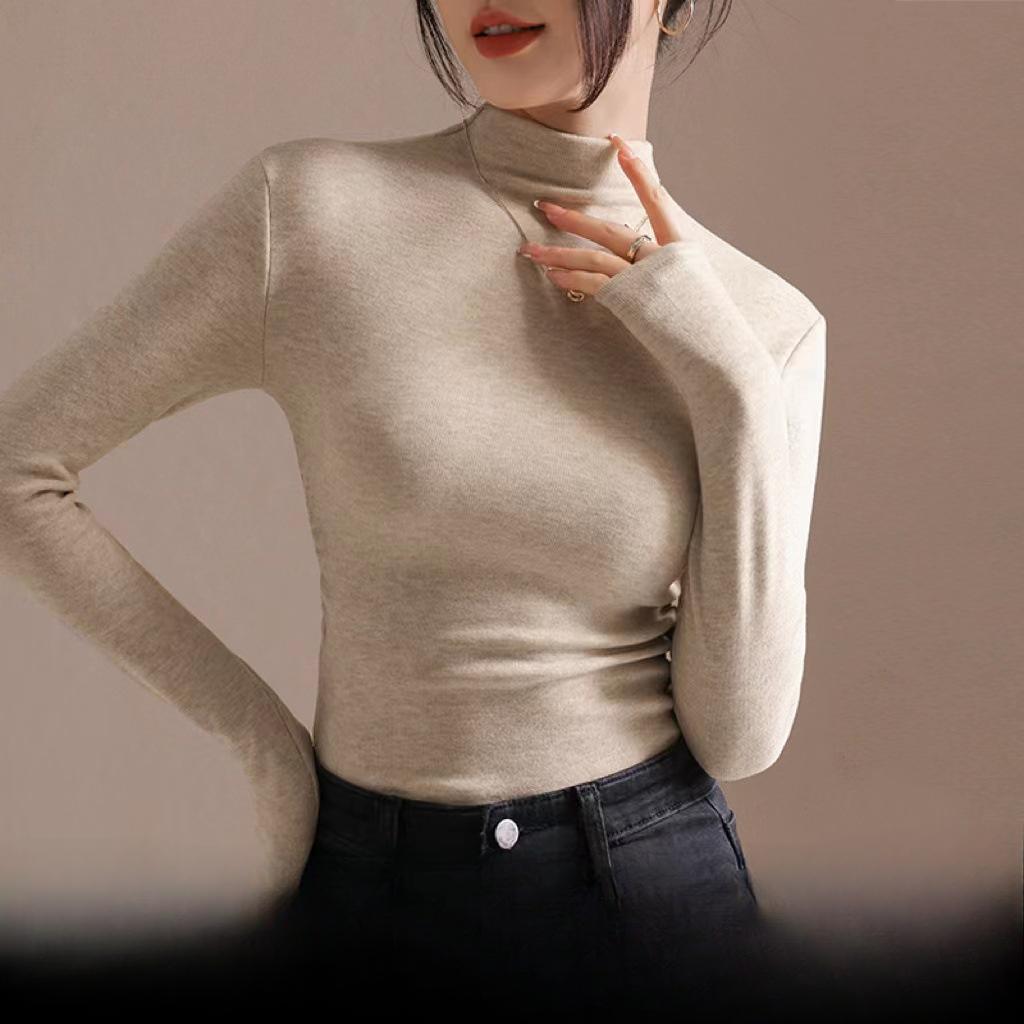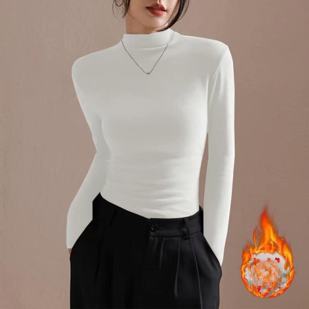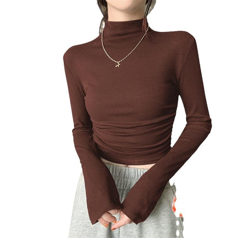 Осенне-зимняя плиссированная плотная теплая футболка с длинными рукавами, женская облегающая универсальная базовая рубашка с длинными рукавами
