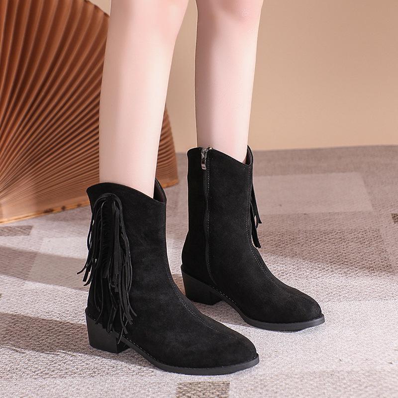 Осенне-зимние женские ботинки, новые женские ботинки с кисточками, ковбойские ботинки, модная повседневная обувь для активного отдыха, женские ботинки Zapatos De Mujer