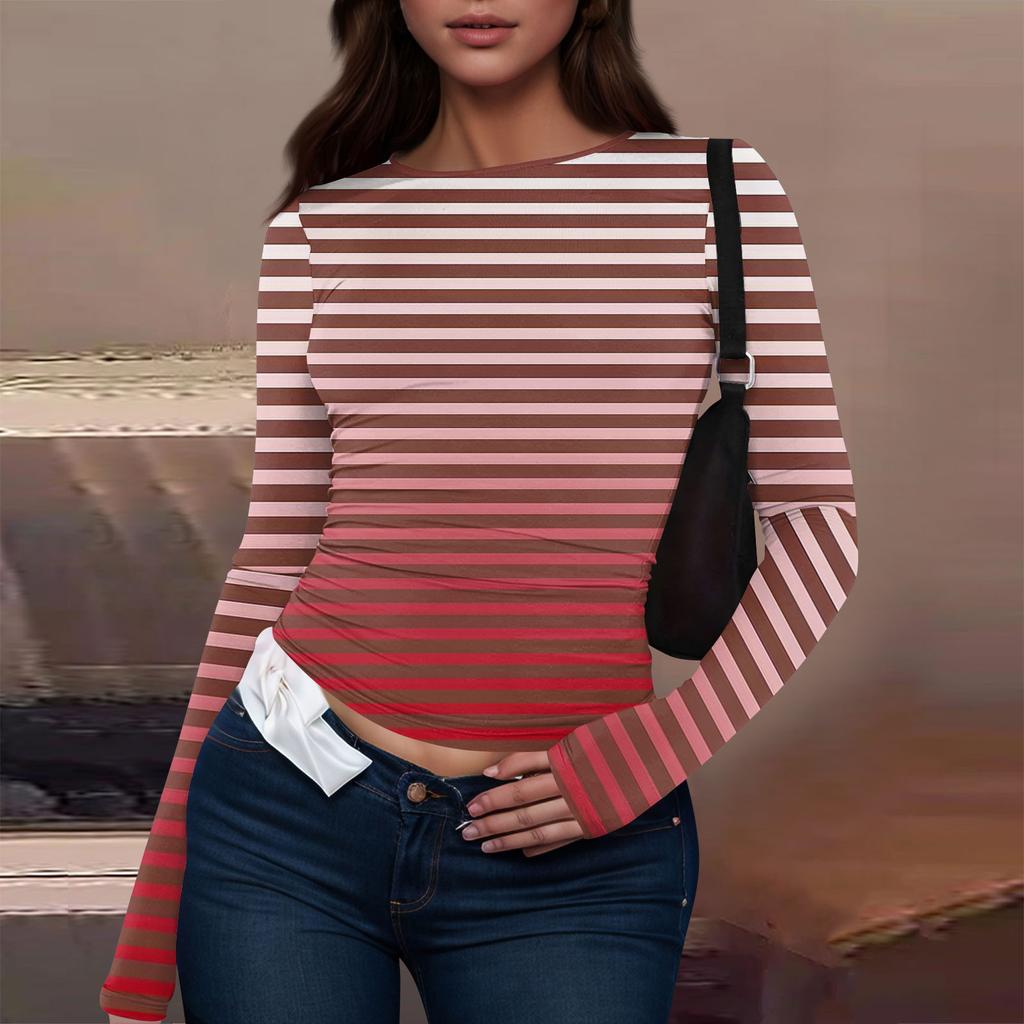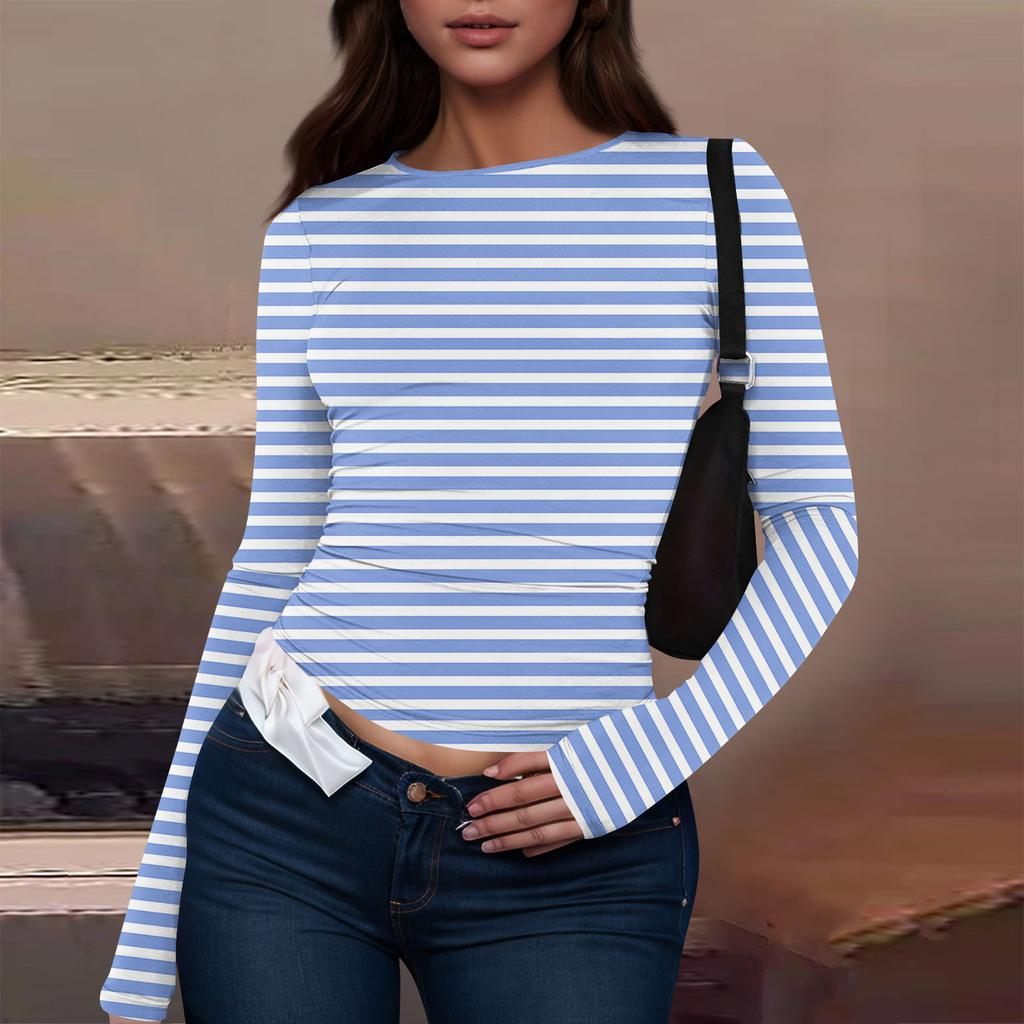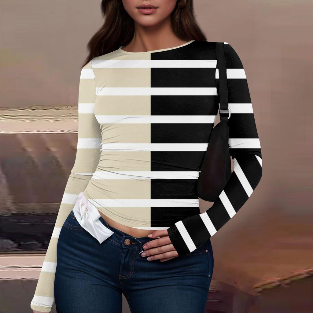 Женская модная повседневная футболка с круглым вырезом и длинным рукавом с принтом