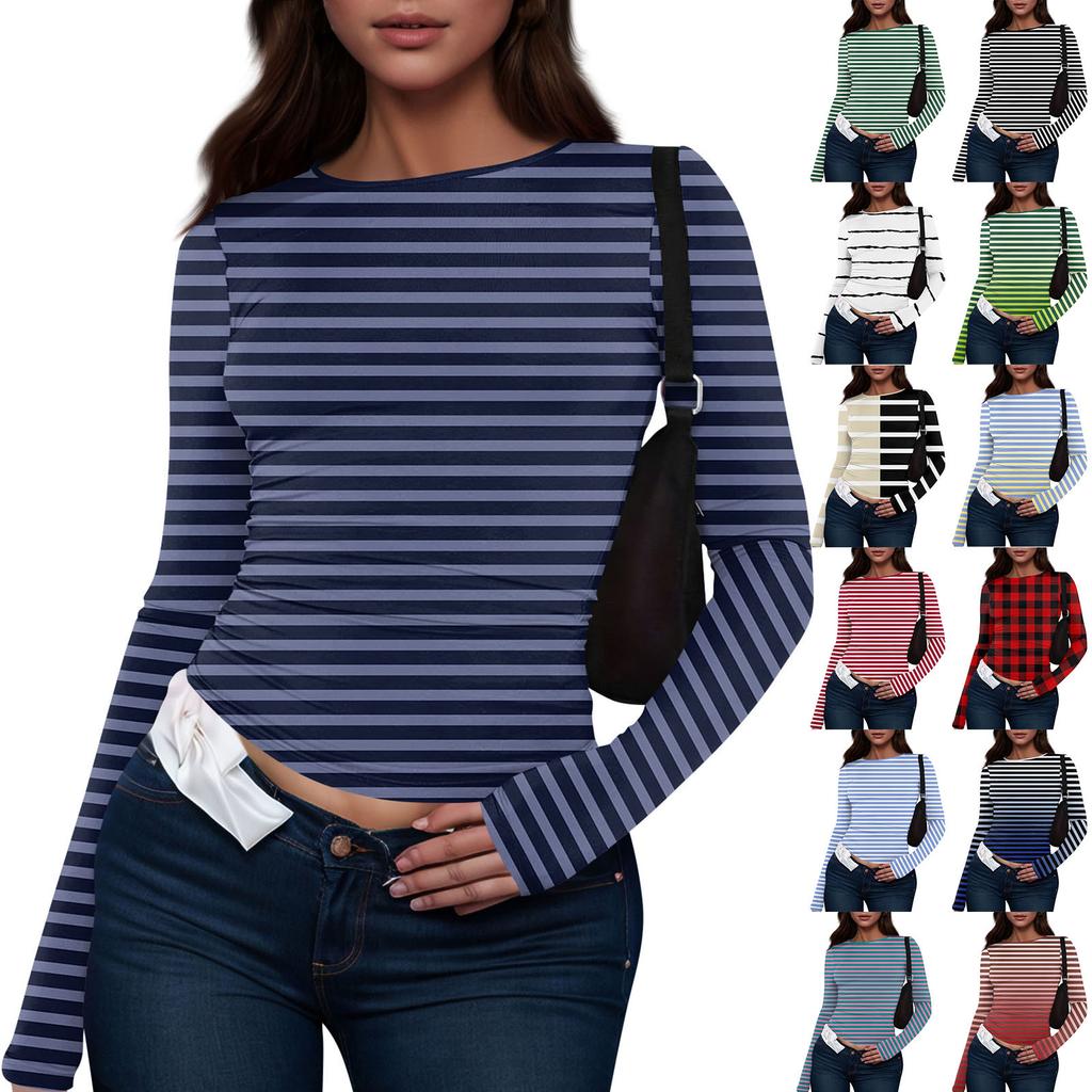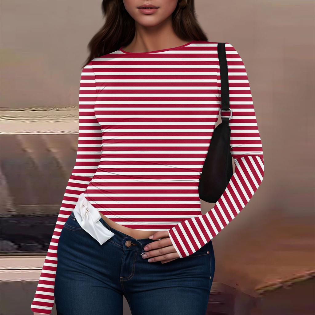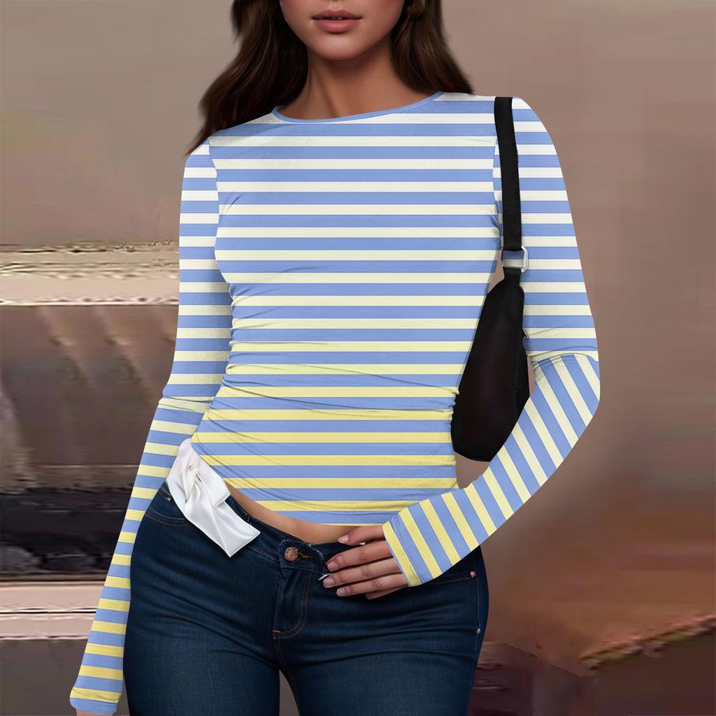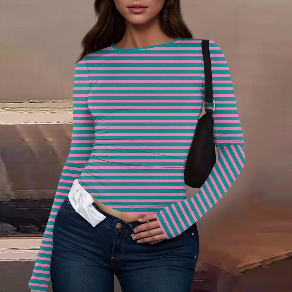 Женская модная повседневная футболка с круглым вырезом и длинным рукавом с принтом