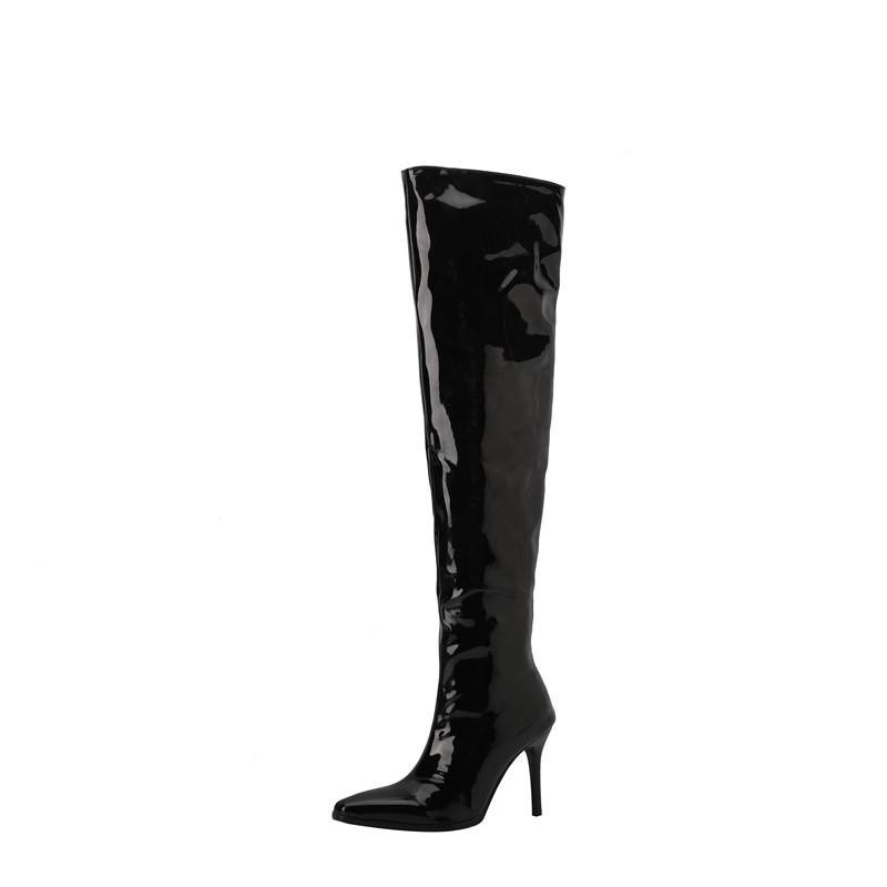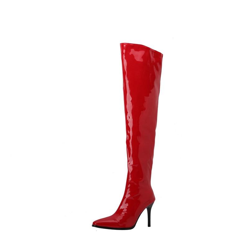 Высокие сапоги женские модные лакированные сапоги выше колена сексуальные туфли для ночного клуба женские туфли красные черные белые большие размеры 48