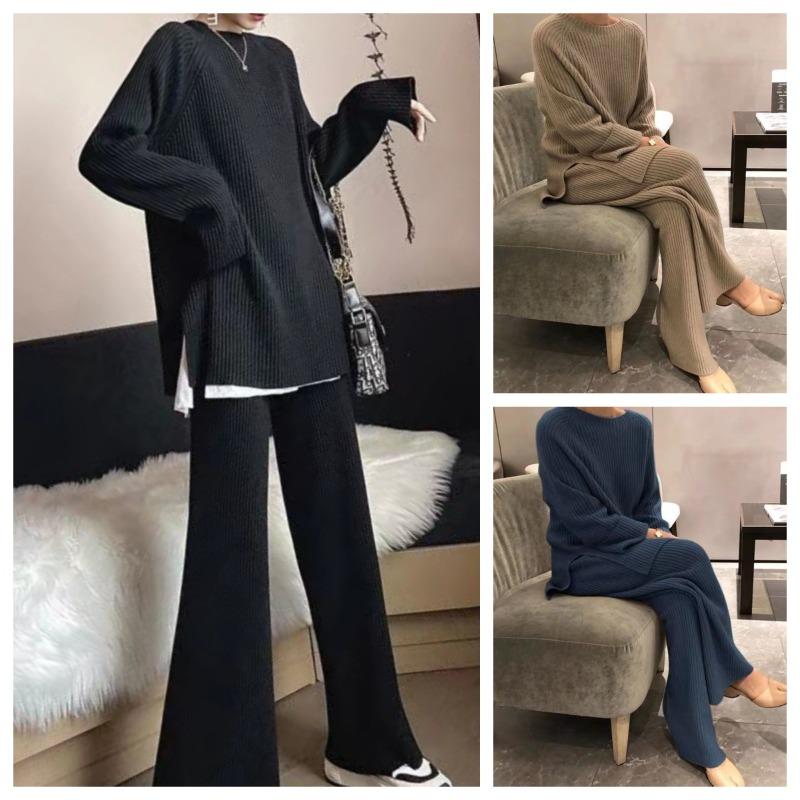 Женские трикотажные наряды, блузка с длинными рукавами и брюки, комплект из двух предметов — купить товар онлайн с бесплатной доставкой по всему миру!