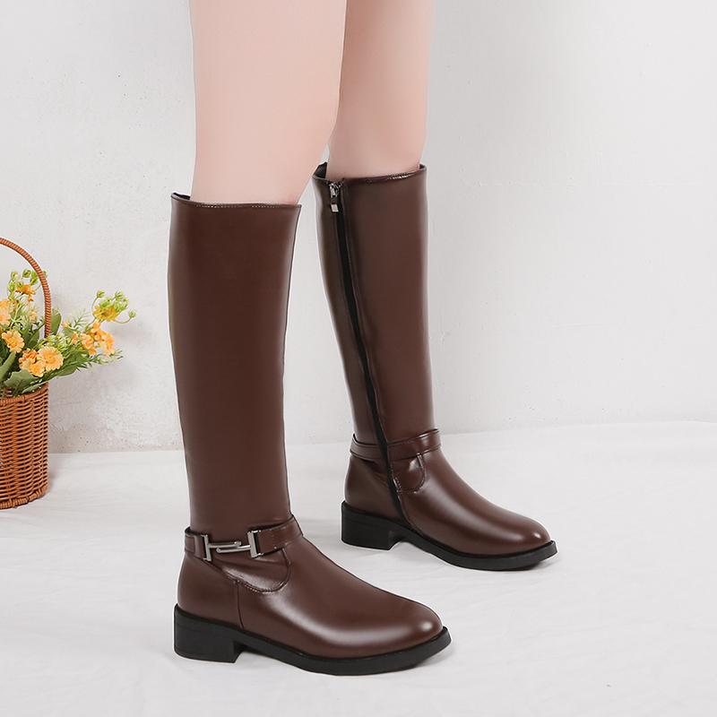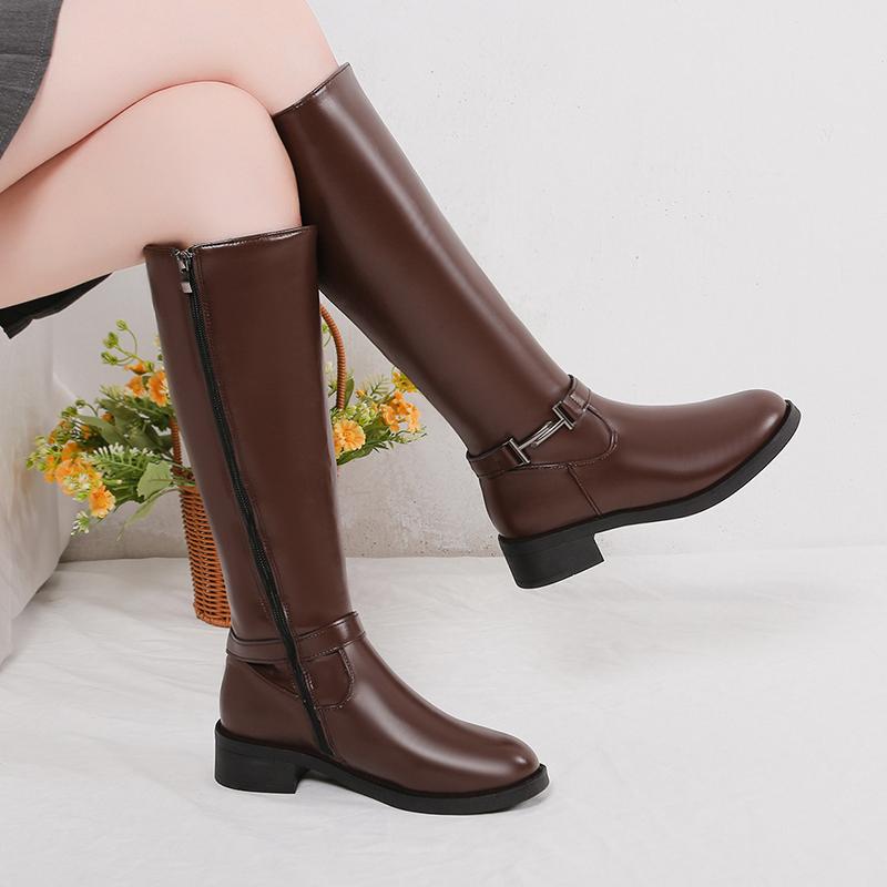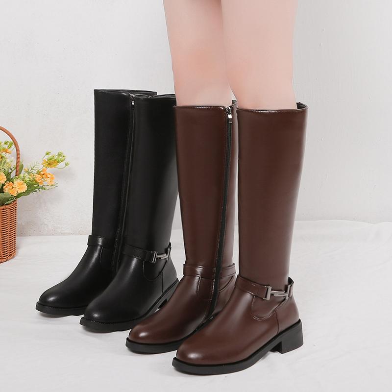 Новые осенне-зимние женские длинные сапоги, большие размеры 35-41, сшитые сбоку, с молнией, модные сапоги до колена, женские современные сапоги