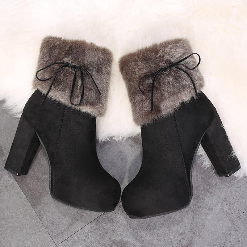 Модные женские ботинки из замши с круглым носком и квадратной боковой молнией для зимы, теплые, лидер продаж, однотонная женская обувь, размеры 34-43
