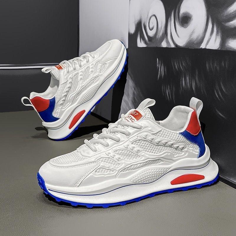Летняя мужская обувь с дышащей сетчатой поверхностью, белые туфли, мужская трендовая универсальная спортивная обувь на платформе, повседневная обувь Daddy Tide