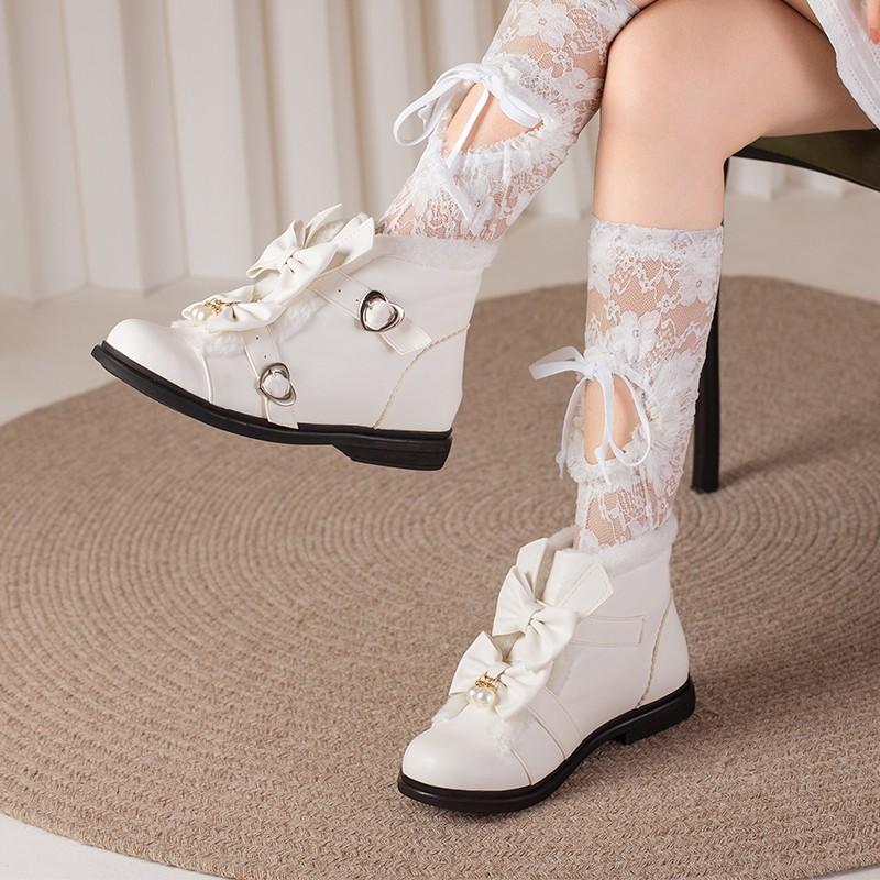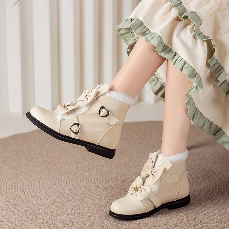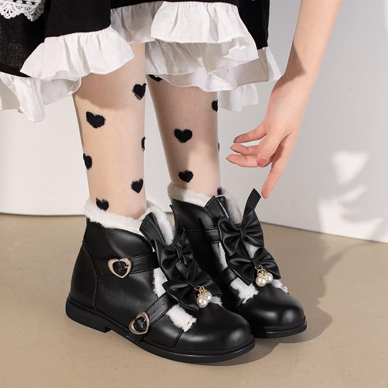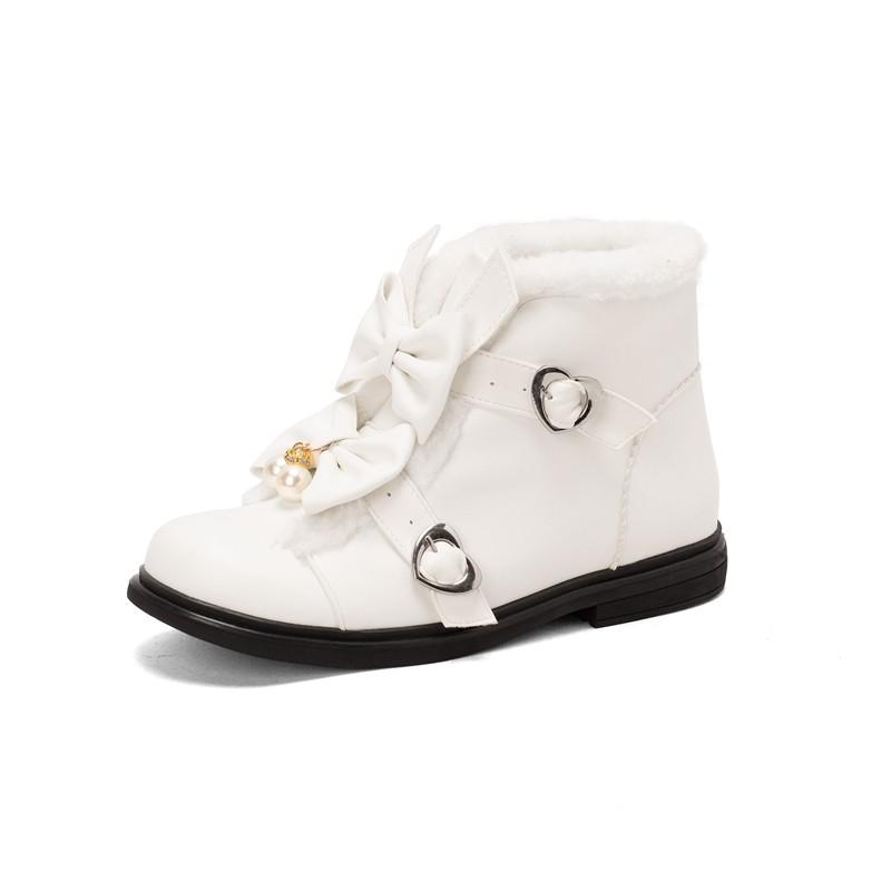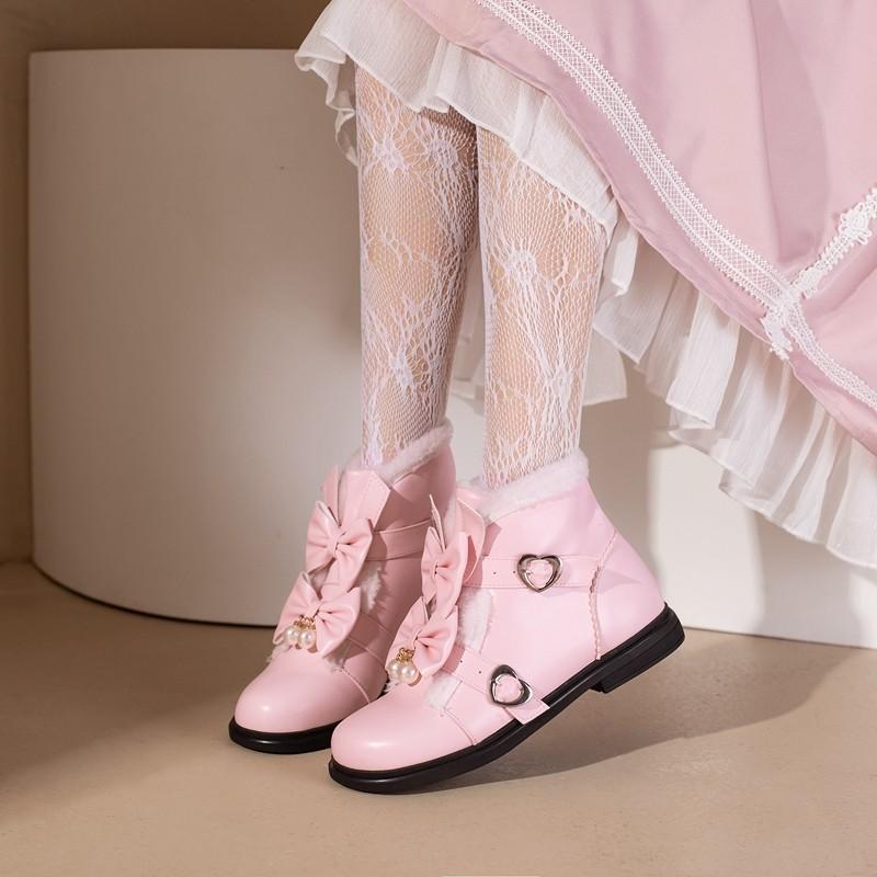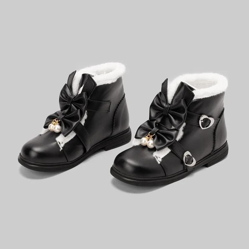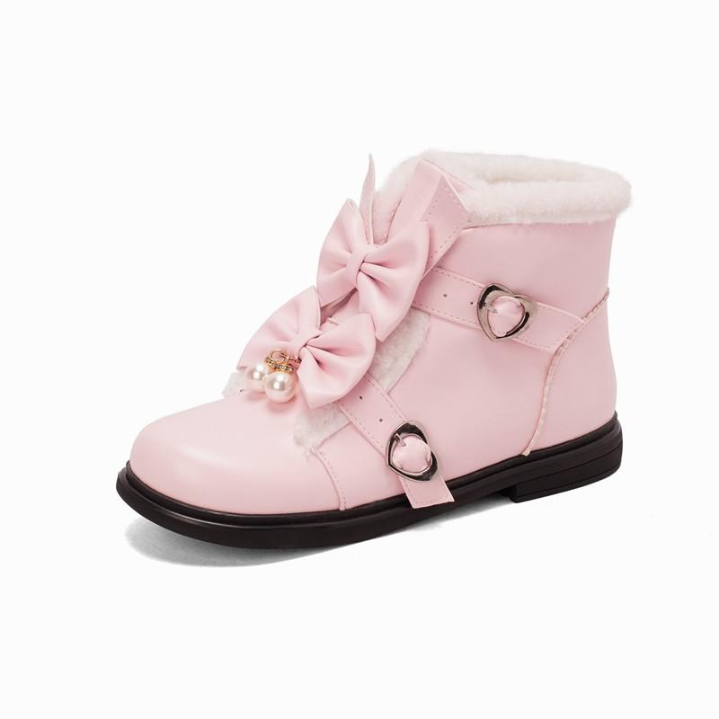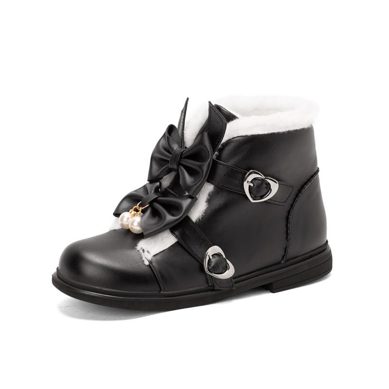 Зимние теплые флисовые меховые милые туфли в стиле Лолиты с бантом женские ботильоны для косплея Kawaii Princess Platform Girl Botas Plus Size 42 43