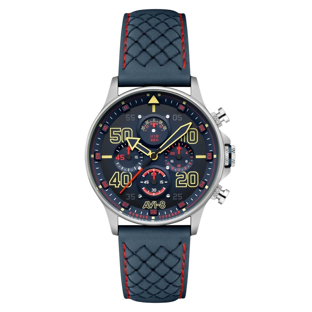 AVI-8 Hawker Typhoon Coningham Chronograph Rumbold кожаный ремешок синий циферблат кварцевые часы AV-4093-0C мужские