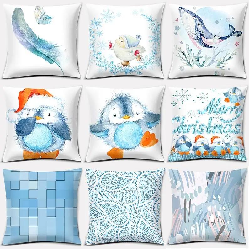 Офис Гостиная Дом Наволочка Синий Пингвин Животное Наволочка Украшения для Машины