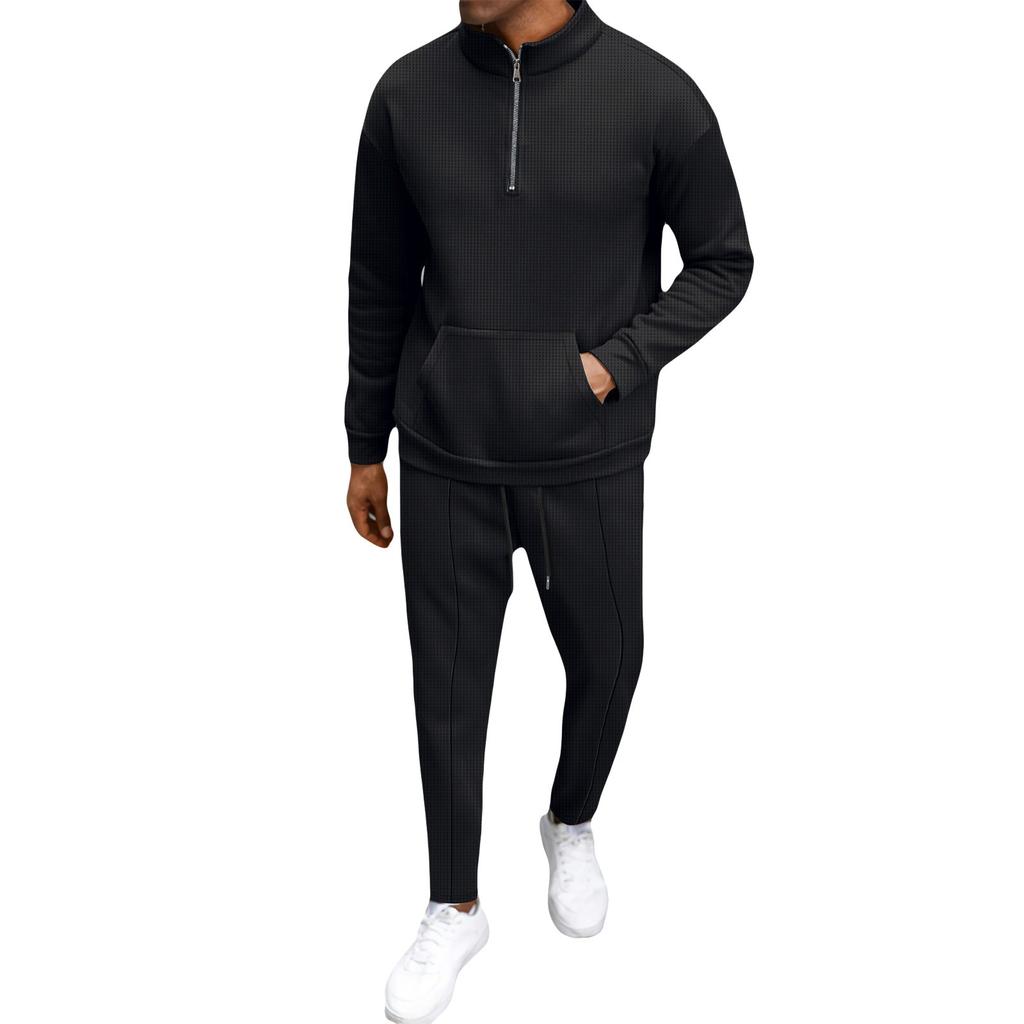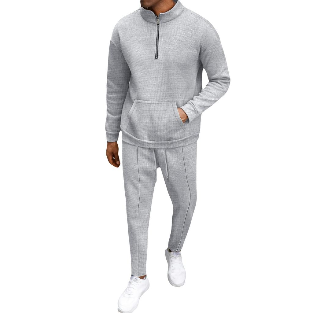 Мужская зимняя повседневная теплая толстовка на молнии с воротником-стойкой, мужские спортивные брюки, комплект из толстовки
