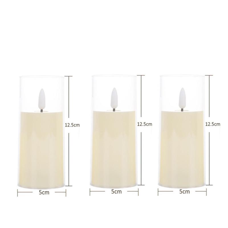 3 шт. беспламенные светодиодные свечи акриловые свечи свадебные теплые белые свечи на батарейках лампа для домашней вечеринки рождественский декор комнаты