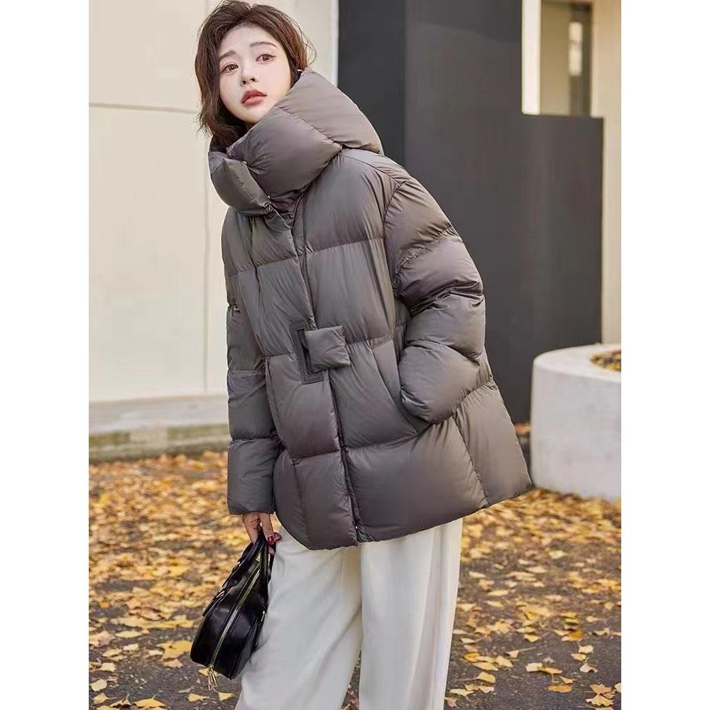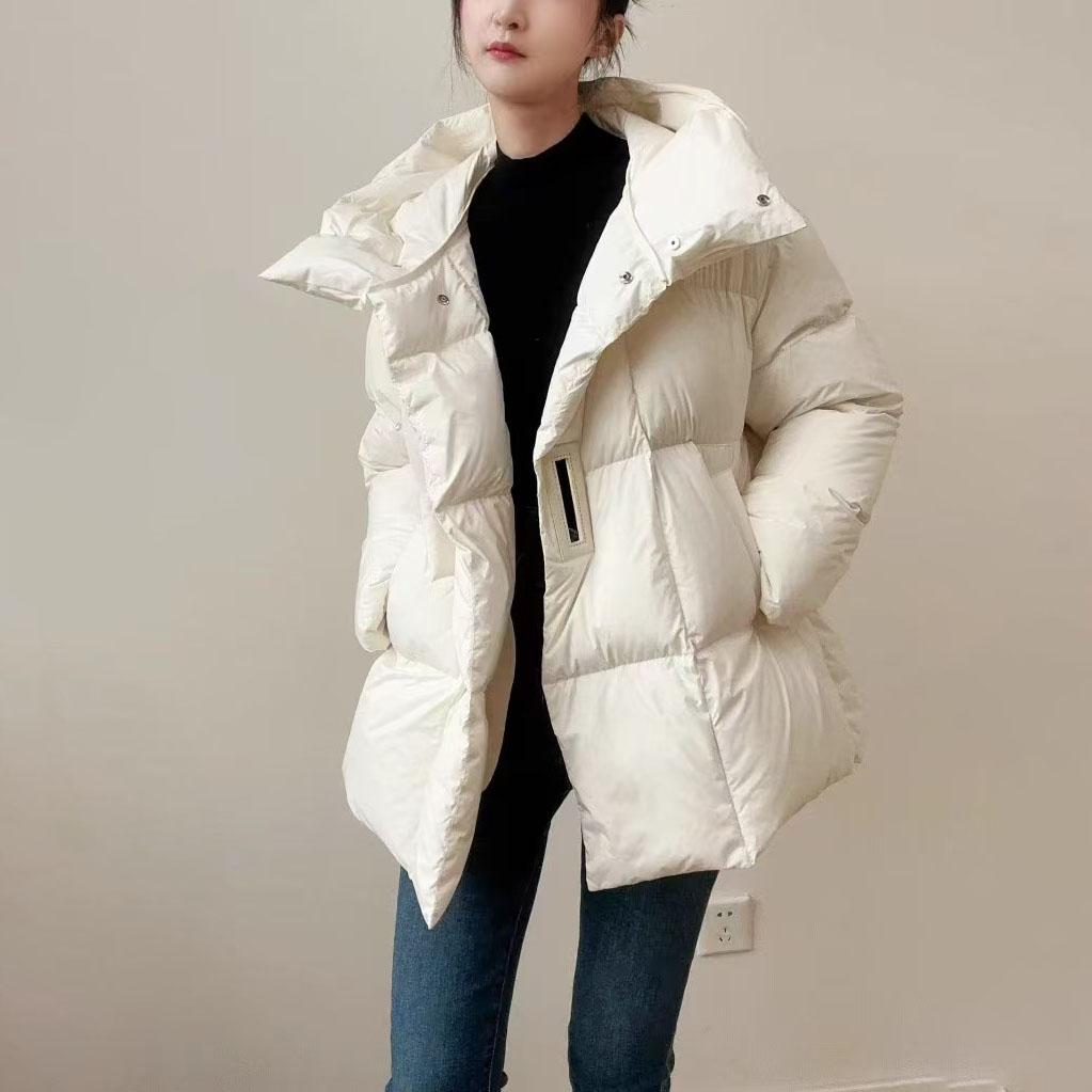 Schinteon Женская куртка-пуховик с воротником-стойкой, свободного покроя, теплая, осенне-зимняя верхняя одежда, белое пальто с воротником-стойкой на утином пуху