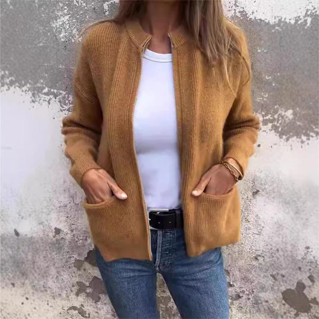 Осенне-зимняя женская мода повседневное пальто со стоячим воротником на молнии свободная куртка с карманами