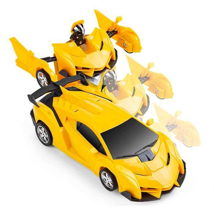Радиоуправляемая машина - RC Car 2 в 1 - Трансформируется в робота - Световые эффекты - Желтая - Для детей
