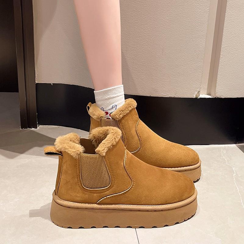 Зимние женские короткие плюшевые теплые зимние ботинки, повседневная обувь, новые замшевые ботильоны «Челси» на плоской подошве, женская обувь на платформе, Botas — купить товар онлайн с бесплатной доставкой по всему миру!