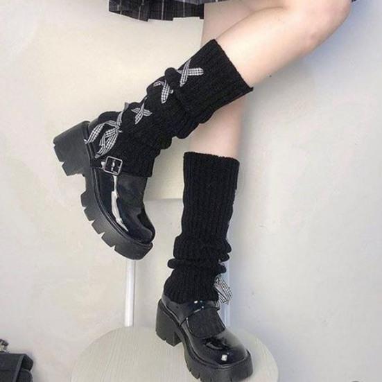 1 пара зимних чехлов для телят, трикотажные, нескользящие, однотонные, со шнуровкой, эластичные, в стиле Лолиты