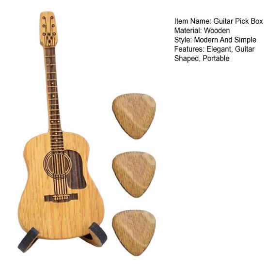 Художественная особенность стенда: Деревянный футляр для медиатора поставляется с подставкой, которая повторяет форму акустической гитары, что также является прекрасным произведением миниатюрного гитарного искусства.. Продемонстрируйте свой выбор стильно, добавив нотку музыкального очарования любому пространству.