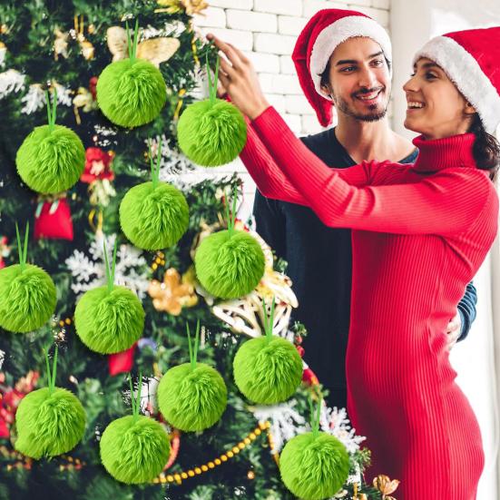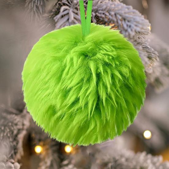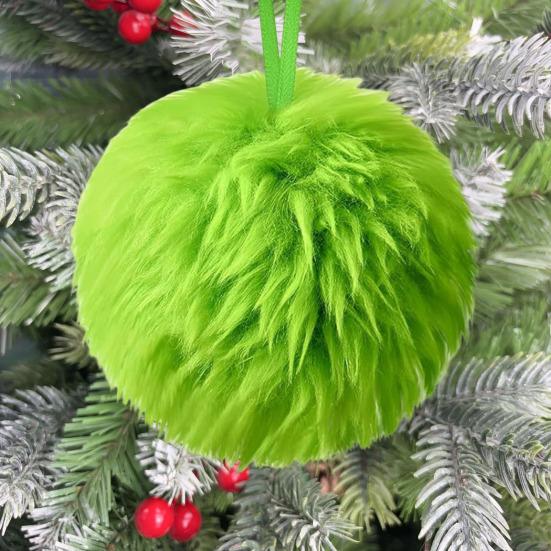 Праздничные зеленые меховые шары-украшения: Украсьте свой рождественский декор этим набором украшений в виде плюшевых зеленых меховых шариков, добавив в праздничную атмосферу нотку радости и чуда.