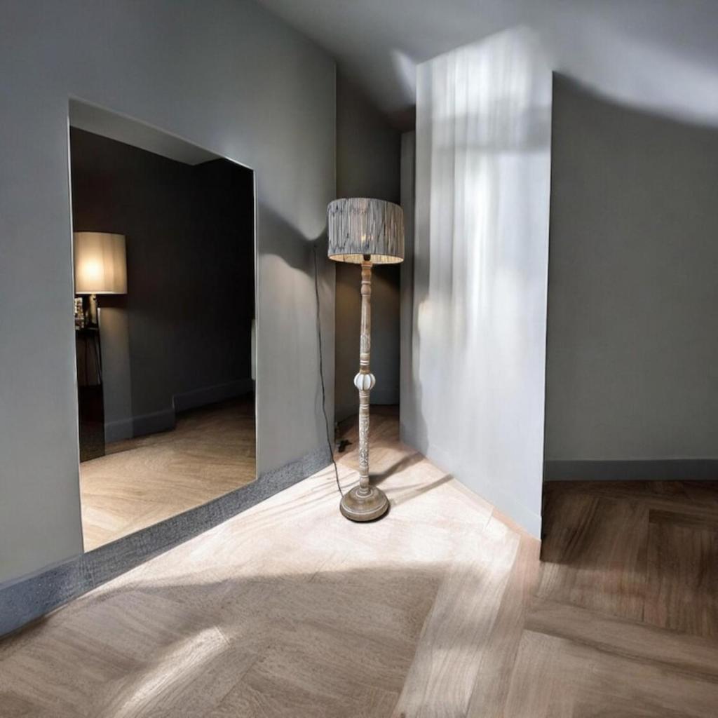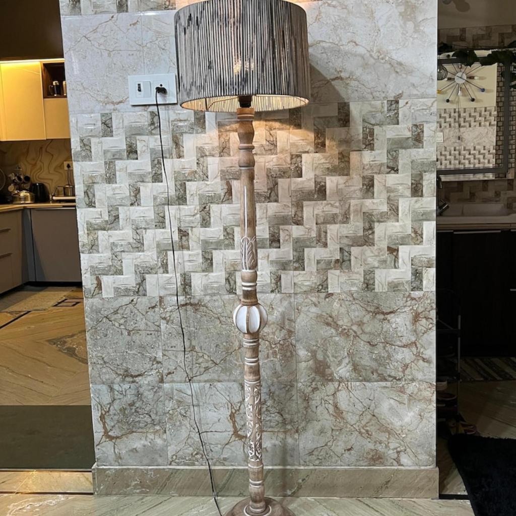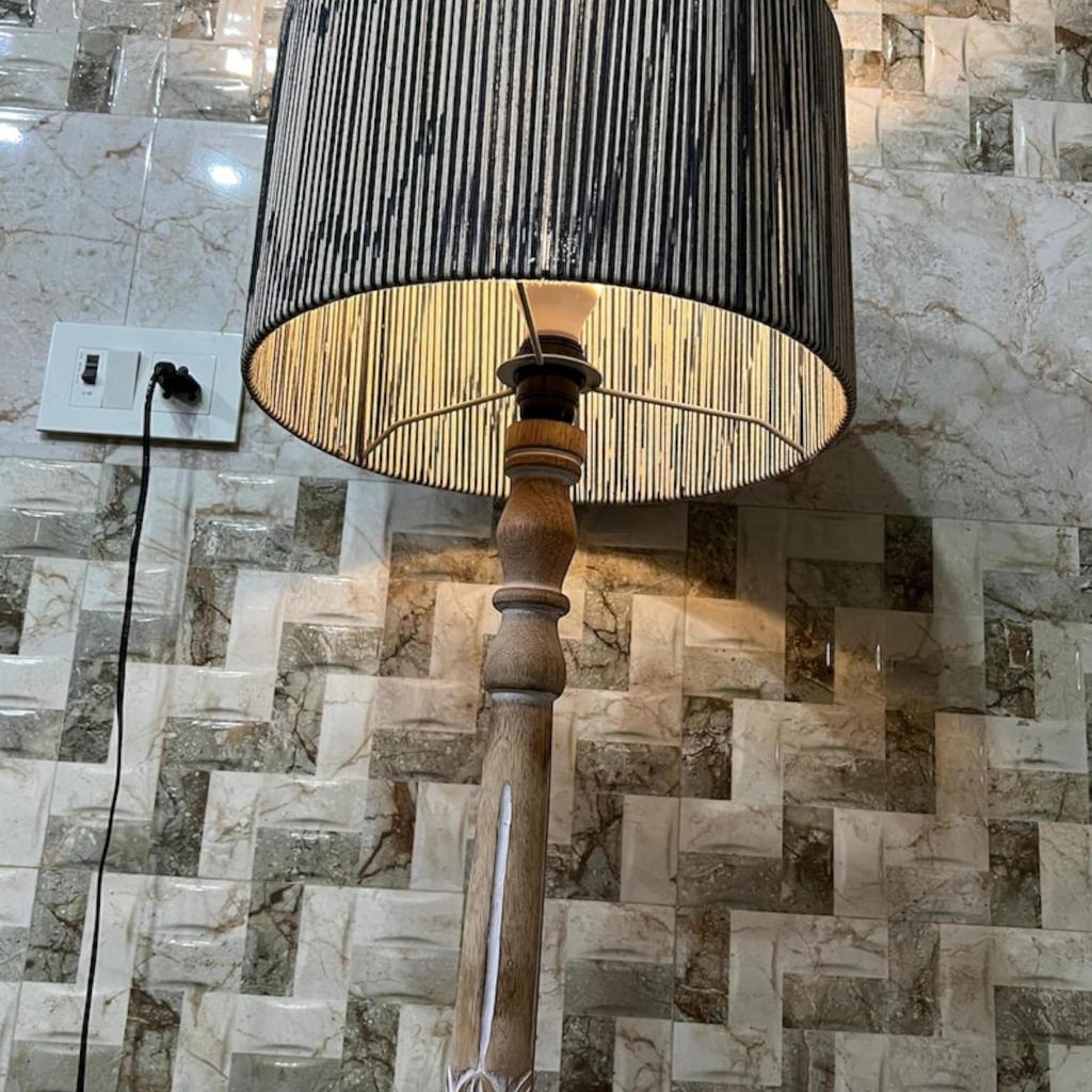 Напольный светильник-тренога из натурального дерева с выгравированным рисунком цветов и листьев, с абажуром из пряжи - промышленный светильник для гостиной, углов