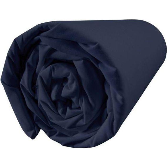 Drap housse - CLARA - 90x190 cm - Couleur Indigo - Jersey extensible - Bonnet 25 cm
