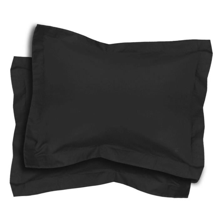 Lot de 2 Taies d'oreiller 50x70 cm - volant plat piqué - pur coton 57 fils - noir