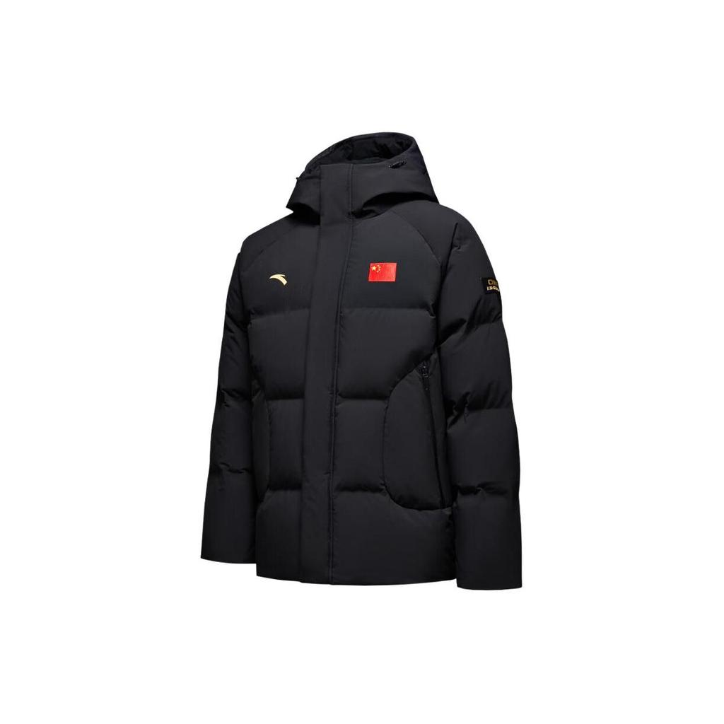 Anta Классический логотип серии с капюшоном на молнии, плотный повседневный короткий пуховик унисекс, верхняя одежда, черный цвет 462340106-1