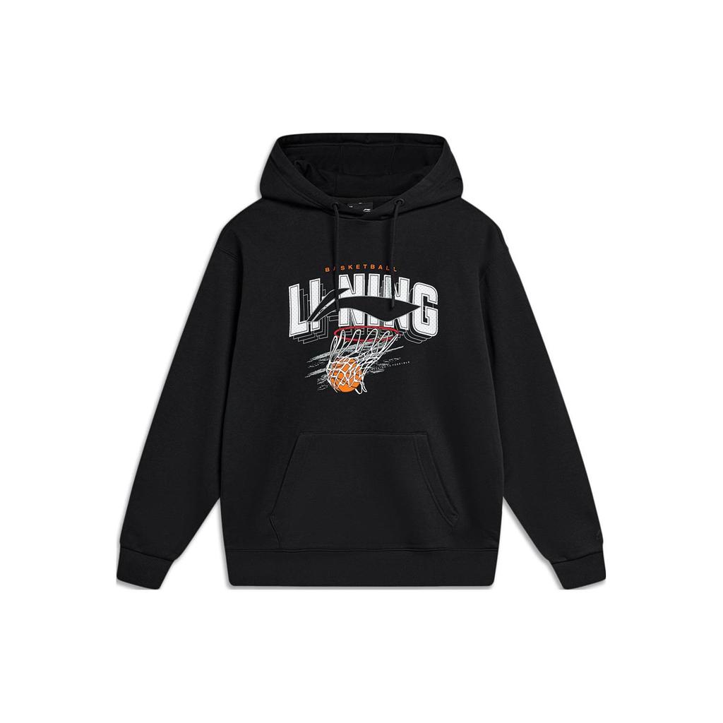 Li Ning Sports Lifestyle Series Lettered Hooded Hooded Fleece Pullover Long Sleeve Hoody Long Sleeve Men sweatshirt Black AWDTE39-1