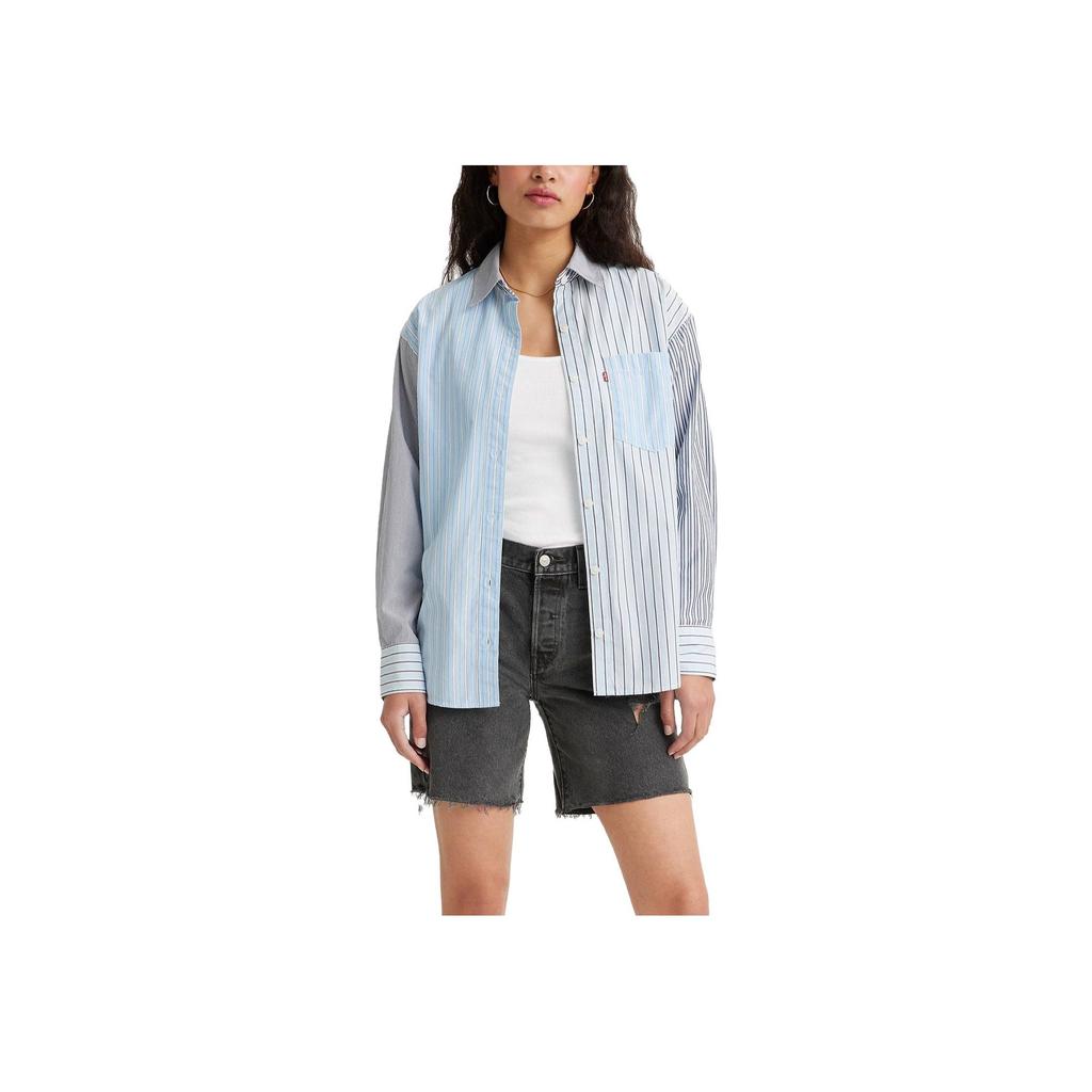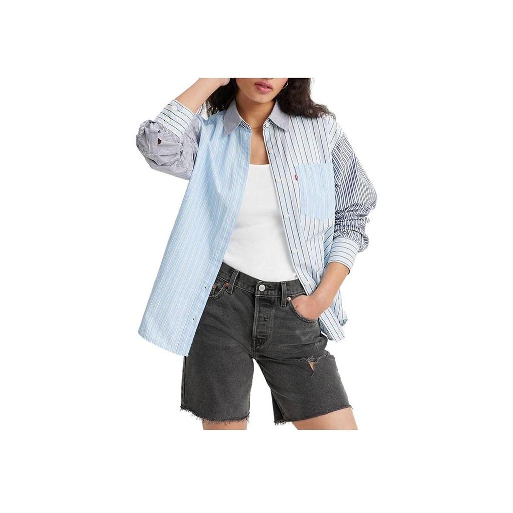 Levis SS23 Рубашка женская приталенная с длинным рукавом и полосатым воротником Синяя A3362-0019
